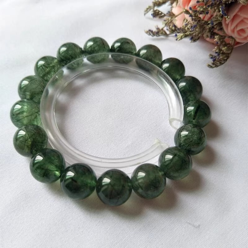 Green Phantom Quartz, also known as Green Rutile Quartz, is a powerful crystal celebrated for its vibrant, plant-like inclusions that appear to grow within the clear quartz. Known as the "Stone of Growth" and the "Manifestation Crystal," it is deeply associated with the energy of nature, prosperity, and personal expansion. This bracelet is more than an accessory; it's a wearable tool for those looking to cultivate abundance and vitality in all areas of life.